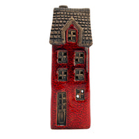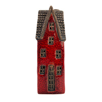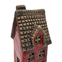 The Goldsmith’s Abode is finished in a rich, crimson glaze, reminiscent of flickering hearths and aged brick cottages nestled beneath oak trees. When a tealight flickers within, it casts a warm, golden glow through the arched windows, filling your space with the comforting spirit of a long-forgotten village evening.