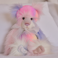 Standing at 43cm (17” / 14 Bear Paws), Neverland is lovingly crafted from a luxurious blend of short and long pile plush fur, creating irresistible softness and depth. Her dreamy kaleidoscope of pastel shades — softly blending pinks, blues, lilacs and gentle hues — gives her an ethereal, storybook presence that feels truly magical.