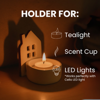 Designed for versatility, this holder is also compatible with Cello scented wax cups, letting you enjoy soft lighting and your favourite fragrance at the same time. Whether styled alone or alongside other pieces from the Cello Home Collection—such as burners, diffusers, and porcelain houses—it brings character and harmony to any setting. Arriving in a beautiful gift box, it’s perfect for gifting or for adding a special touch to your own home décor.