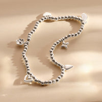 Crafted with a polished silver-plated beaded stretch design, this elegant bracelet is finished with a selection of symbolic charms including hearts and lucky motifs — each one representing love, care and thoughtful connection. The comfortable 17.5cm stretch fit makes it effortless to wear every day, whether styled alone as a sentimental statement or layered with other favourite Joma pieces.