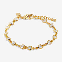 Gold-plated and crafted with a delicate row of heart-shaped crystals, this bracelet adds subtle sparkle without overpowering your look. Its adjustable 18cm length with a 3cm extender ensures a comfortable, tailored fit—perfect for layering or wearing solo.
