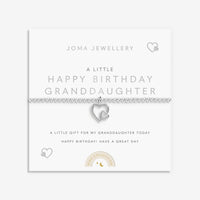 Make her birthday unforgettable with the Joma Jewellery Kids' Bracelet - Happy Birthday Granddaughter - A Little. This adorable silver-plated kids' bracelet is crafted with love, featuring a sweet charm and thoughtful sentiment card. Designed with little wrists in mind, this 15.5cm stretch bracelet is part of Joma’s bestselling A Little Kids’ Collection, where one piece sells every 30 seconds worldwide.