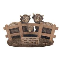 Enhance your home with the Highland Cow Together figurine, a sweet and meaningful décor piece that celebrates the joy of togetherness and adds a charming accent to any space.
