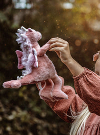 Hearts is the sweetest pink dragon you’ll ever meet! With her soft pastel wings, playful spikes, and huggable fur, she’s the perfect dragon for anyone who loves magic, fairy tales, and a touch of sparkle. Her rosy pink colour and gentle expression make her look like she’s stepped right out of a storybook!