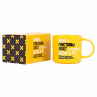 - Printed with the witty quote: “Being a functional adult every day seems a bit excessive”