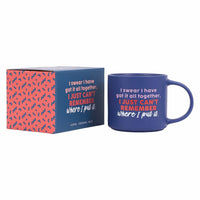 Perfect for the perpetually scatterbrained, this cheeky mug blends vibrant design, witty humour, and practical everyday use. Crafted from high-quality ceramic, it’s durable enough to survive life’s daily mishaps (and a few dropped spoons). With a 435ml capacity, there’s plenty of room for your favourite brew — whether it’s that first wake-up coffee, a mid-afternoon tea, or a late-night cocoa when you’re still trying to remember where you left your glasses.