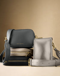 Our Avery Small Crossbody Bag in Graphite showcases a timeless camera bag silhouette with a secure top zip closure and a detachable, adjustable strap with asymmetric detail. Finished with gold-tone...