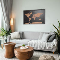 Featuring a crisp Black design framed in a stylish wooden border, this framed cork travel map blends effortlessly with modern interiors while adding a meaningful personal touch to your home or workspace. Whether displayed in a living room, office or study, it becomes a striking focal point that inspires conversation and wanderlust.