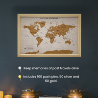 • Stylish framed cork travel map design