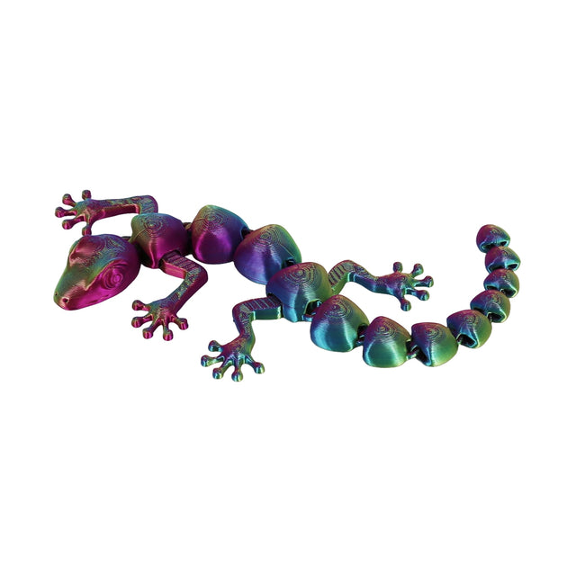 Engineered with a flexible body that twists and bends, this gecko fidget toy is perfect for those who need to fidget to focus or unwind. The triple-tone design shimmers with movement, adding a dynamic edge to this already enchanting 3D printed lizard toy.