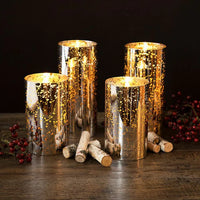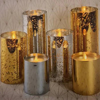 Illuminate your home with the radiant elegance of the Luminara Indoor 3.0" x 5.0" (7.6 cm x 12.7 cm) Candle in Gold Mercury Glass. This stunning candle features a beautiful gold mercury glass finish that exudes warmth and sophistication, creating a captivating glow that enhances any indoor setting. Powered by Luminara's patented flame-effect technology, it offers the realistic flicker of a real flame without the hazards of smoke, soot, or an open flame.