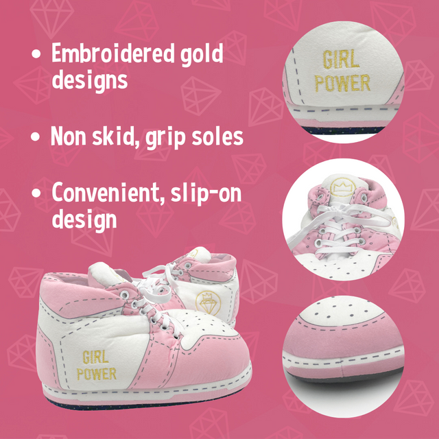 Unleash your inner girl power with Baffies' Krazy Kicks in pink – the ultimate fun and fabulous novelty slippers!