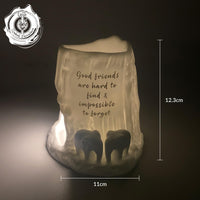 In the spirit of two adult elephants navigating life's journey together, Cello's "Good friends are hard to find & impossible to forget" tealight burner illuminates the path of friendship with tenderness and affection.