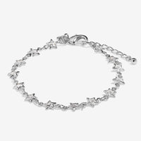 Finished in polished silver plating, the bracelet features a continuous row of sparkling star-shaped stones that catch the light with every movement. The adjustable 18cm + 3cm extender offers a comfortable, flexible fit, making it ideal for all-day wear.
