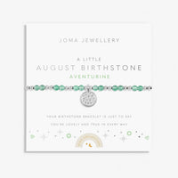 See your little birthday babe shine bright on their special day with our twinkling Kids' Birthstone A Littles - a sweet assortment of beaded bracelets, threaded with semi-precious gemstones to represent each birth month! Featuring gorgeous aventurine gemstones, a sparkling silver-plated disc charm, and a poem straight from the heart, our Kids' A Little 'August' Birthstone Bracelet In Silver Plating will make the perfect addition to their little wrist stack.