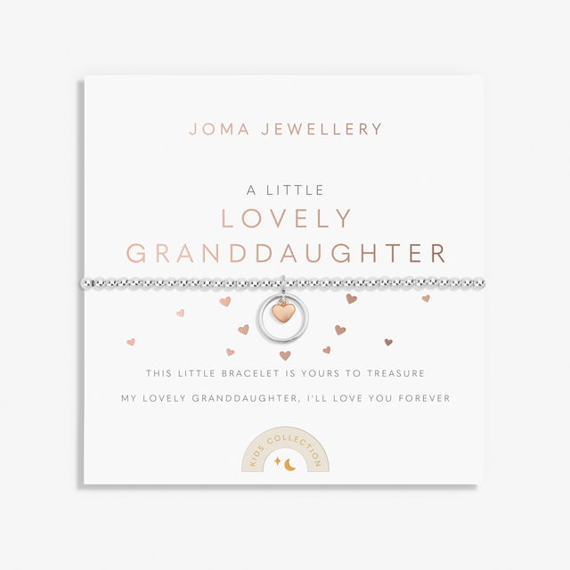 Complete your jewellery offering with our adorable Children's A Little collection. This 'Lovely Granddaughter' Children's Bracelet makes for the perfect present for every little darling. Featuring silver-plated beads with a...