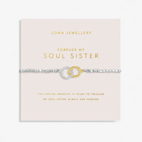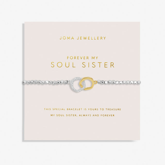 Discover our brand-new Forever Yours Collection, made to be treasured for a lifetime. This beautiful bracelet features a silver-plated hammered bead design with a shimmering charm. Complete with a pretty blush pink card which has been stamped with the sentiment 'Forever My Soul Sister' and a short sweet poem.Â