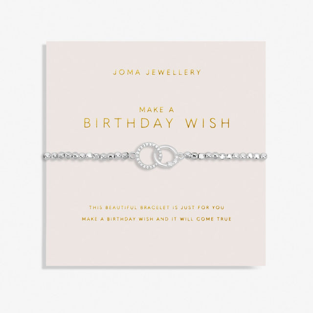 Discover our brand-new Forever Yours Collection, made to be treasured for a lifetime. This beautiful bracelet features a silver-plated hammered bead design with a cute charm. Complete with a pretty blush pink card which has been stamped with the sentiment 'Make A Birthday Wish' and a short sweet poem.Â