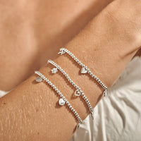 The comfortable 17.5cm stretch fit makes this bracelet effortless to wear, whether styled alone or layered with other Joma favourites. Elegant yet playful, this silver charm bracelet is perfect for everyday sparkle.