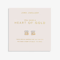 Celebrate the special people in your life with the Joma Jewellery Earrings - Heart Of Gold - Forever Yours | Silver & Gold Plated | Collectables. These stunning silver-plated earrings are part of the Forever Yours collection, beautifully presented on a blush pink card featuring a heartfelt poem and sentiment-stamped message. The perfect gift for someone with a heart of gold, these earrings are designed to be cherished forever.