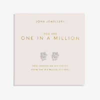 Celebrate the special people in your life with the Joma Jewellery Earrings - One In A Million - Forever Yours | Silver Plated | Collectables. These stunning silver-plated earrings are part of the Forever Yours collection, beautifully presented on a blush pink card featuring a heartfelt poem and sentiment-stamped message. The perfect gift for someone one in a million, these earrings are designed to be cherished forever.