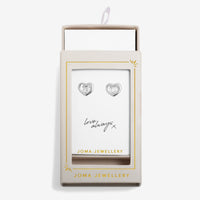 Crafted in a polished silver-plated finish, these delicate heart-shaped studs feature a sparkling central stone detail that adds a soft touch of shimmer. The timeless heart design symbolises love and appreciation, making them a sentimental everyday accessory she’ll treasure.
