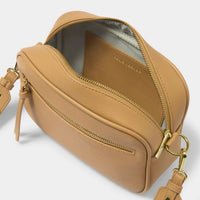 The Hallie Crossbody Bag in Camel exudes timeless sophistication with its thoughtful design and versatility. Featuring a distinctive double strap option—a sleek, adjustable crossbody strap paired with an additional vegan...
