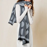 Our Large Heart Printed Blanket Scarf in Charcoal & White is expertly crafted from soft, cosy material, offering warmth and comfort throughout the year. The double-sided heart pattern adds a...