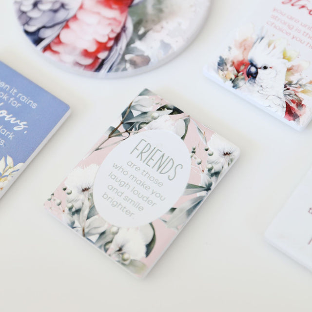 Crafted with care, the Splosh - Native Blooms Friends Ceramic Magnet adds a warm and loving touch to any magnetic surface. Featuring the cheerful quote, 'Friends are those who make...