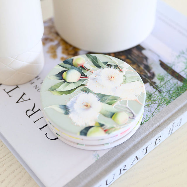 Transform your table top with our round ceramic coaster, a charming design that highlights the distinctive beauty of Australian Gumnuts. With its earthy tones and intricate details, this coaster captures the essence of Australia’s unique flora. Crafted with meticulous attention to detail, the Gumnuts symbolize growth and resilience, bringing a rustic yet refined feel to any space. Compact and versatile, this coaster is both functional and decorative, making it an ideal addition to any table, for nature lovers.