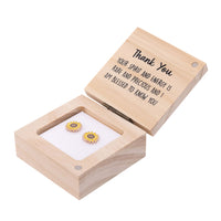 Each pair is presented in a wooden keepsake box, making them gift-ready for any occasion. Inside, a heartfelt message reads: