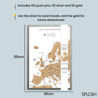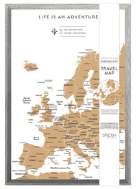 Splosh - Map of Europe pin board in our signature grey design. The Splosh Travel Map collection is the ideal way to plan and plot all your visits to countries all across Europe, both past and present.