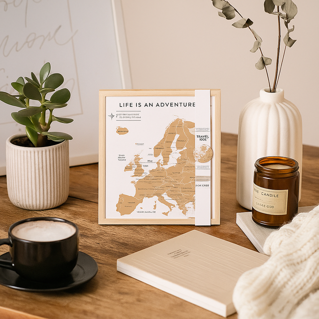 The maps act as a perfect learning aid, a noticeboard for memos and reminders or a place to hang photos with your favourite memories. The wooden frame and cork backing make the maps light and easy to handle.